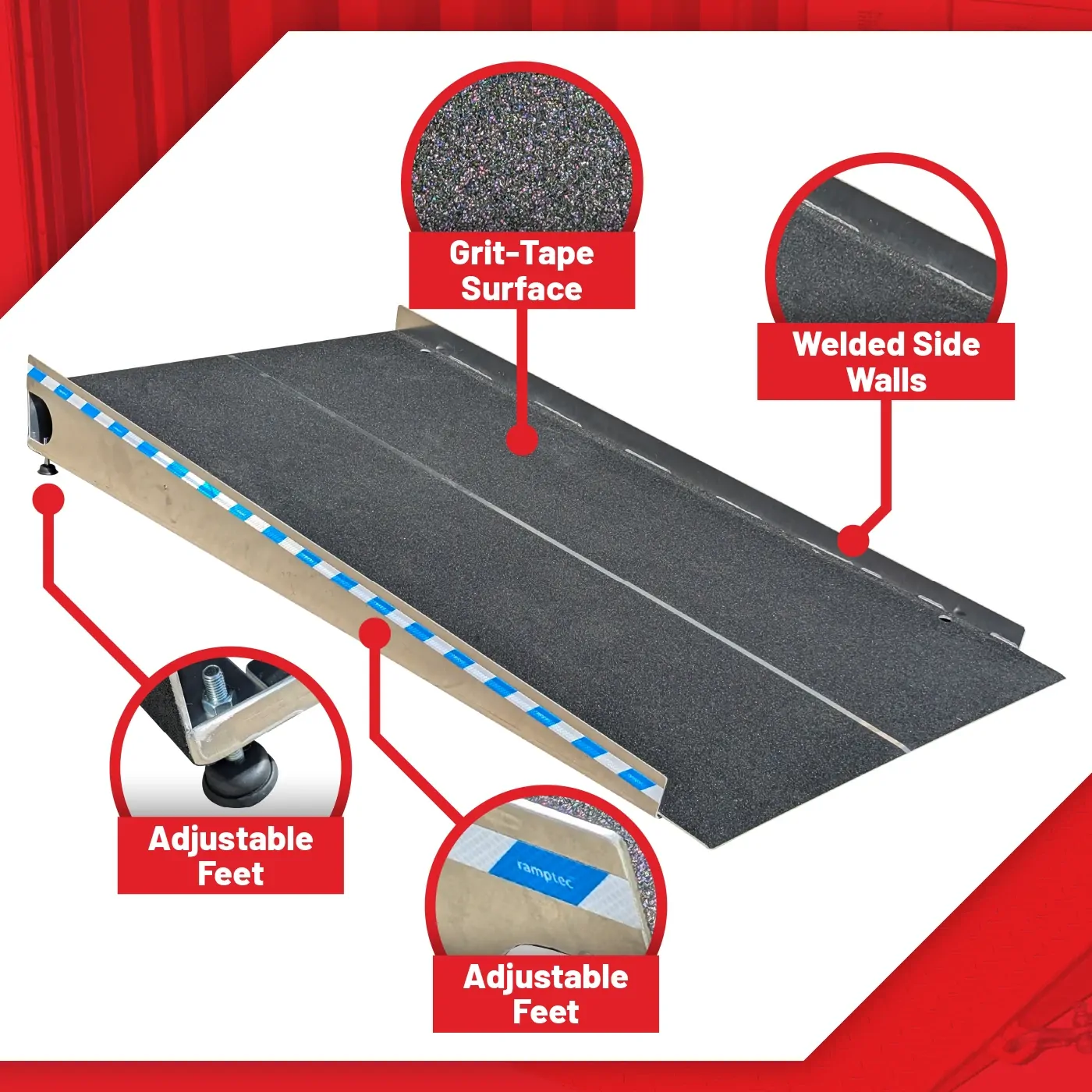 Ramptec 1900mm x 1000mm Aluminium Access/Garage Ramp anti slip surface - Adjustable from 163mm up to 190mm