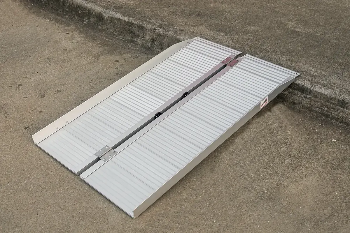 Loading and unloading will be made easier with this Portable Aluminium Folding Loading Wheelchair Ramp. Various sizes are available ranging from 2 Feet – 6 Feet. Made from super strong aluminium construction which is light-weight and portable to use. The ramp is centre folding with a convenient carry handle.