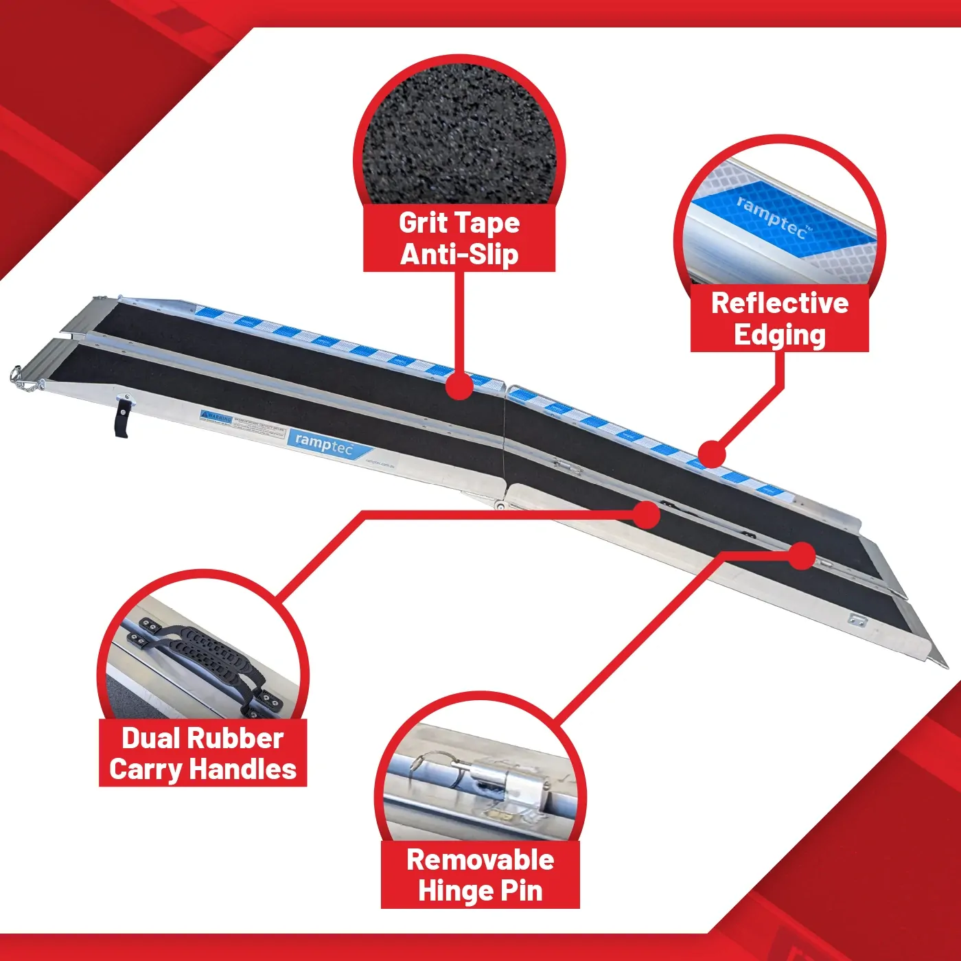 Can be folded and divided into two pieces when not in use for carrying or can be used as 2 individual ramps