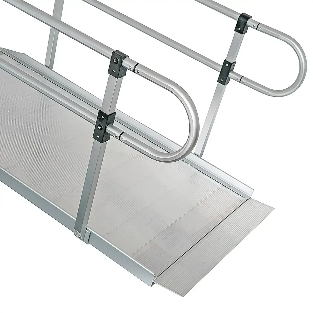 Manufactured from aluminium, these ramps feature seamless construction, a slip-resistant surface, and a self-adjusting ground transition plate.