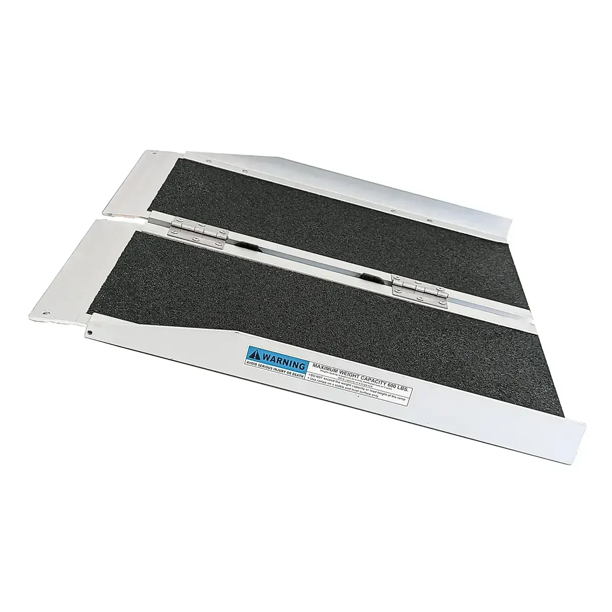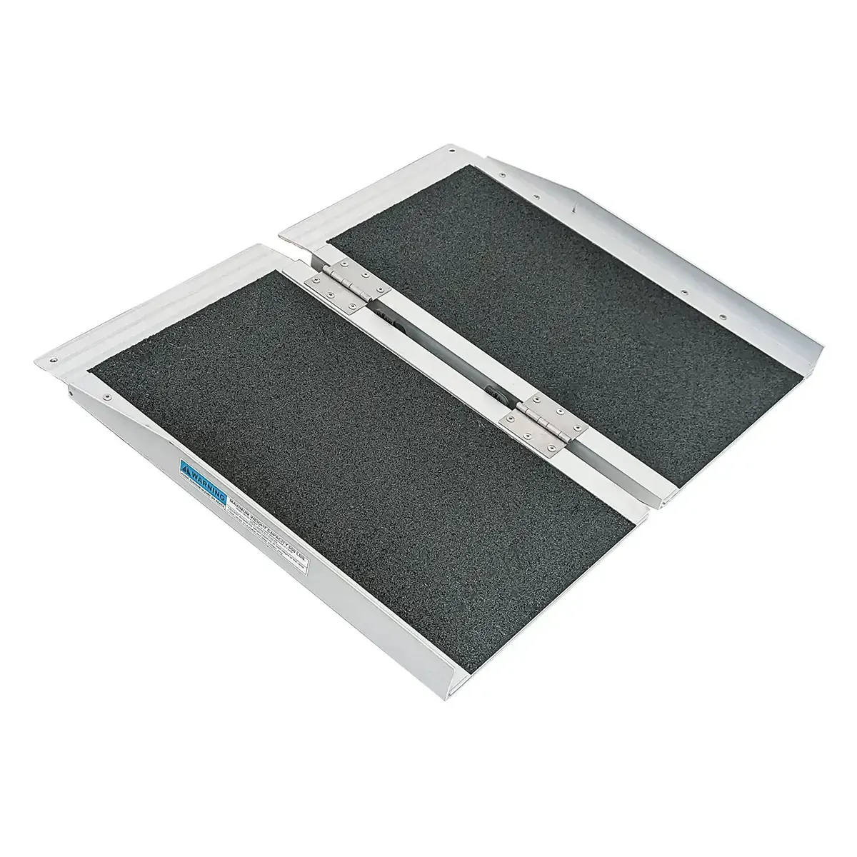 Loading and unloading will be made easier with this Portable Aluminium Folding Loading Wheelchair Ramp. Various sizes are available ranging from 2 Feet – 6 Feet. Made from super strong aluminium construction which is light-weight and portable to use. The ramp is centre folding with a convenient carry handle.