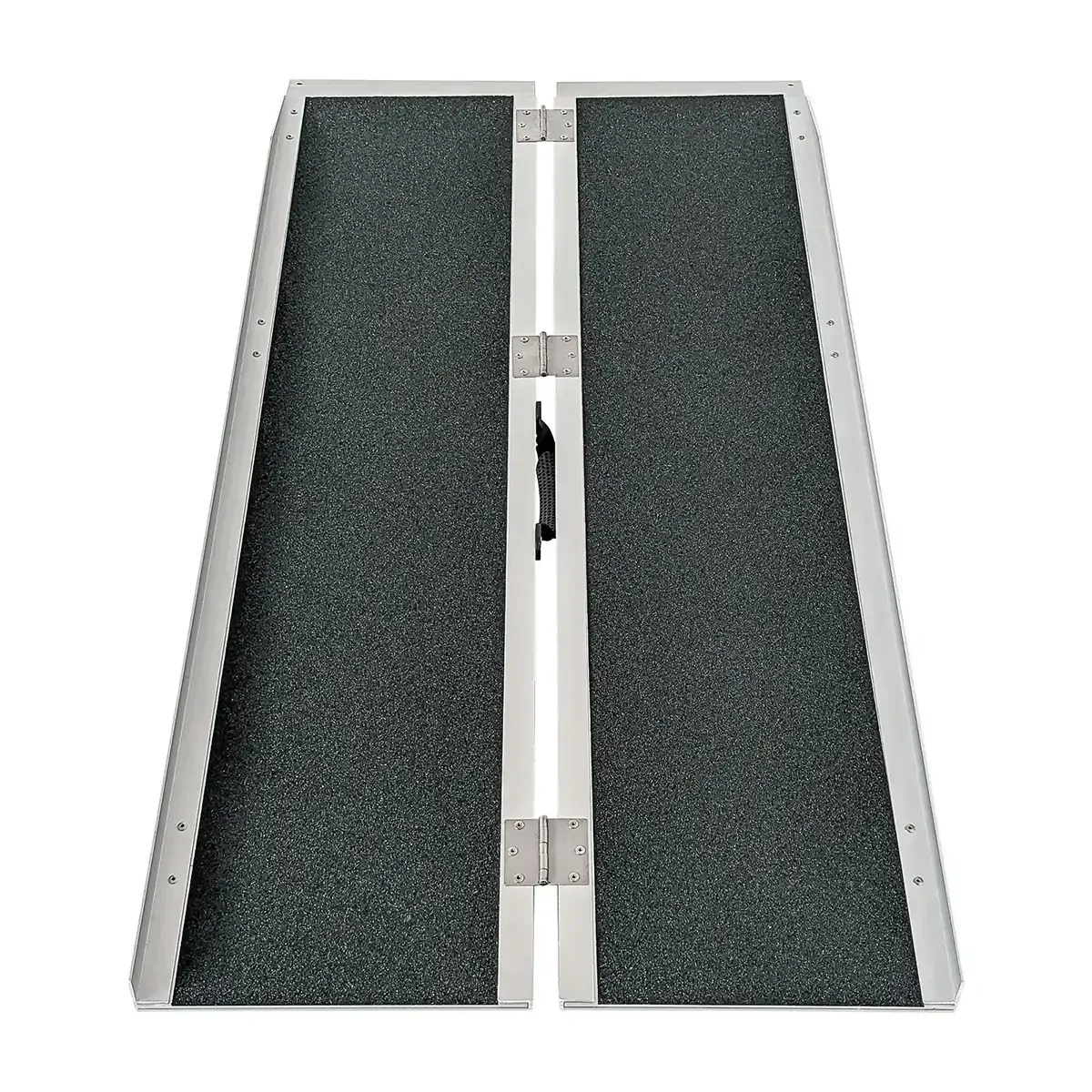 Loading and unloading will be made easier with this Portable Aluminium Folding Loading Wheelchair Ramp. Various sizes are available ranging from 2 Feet – 6 Feet. Made from super strong aluminium construction which is light-weight and portable to use. The ramp is centre folding with a convenient carry handle.