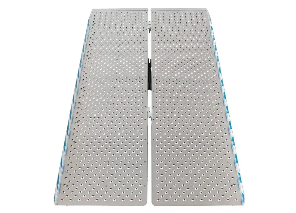 Loading and unloading will be made easier with this Portable Aluminium Folding Loading Wheelchair Ramp. Various sizes are available ranging from 2 Foot – 6 Foot. Made from super strong aluminium construction which is light-weight and portable to use. The ramp is centre folding with a convenient carry handle.