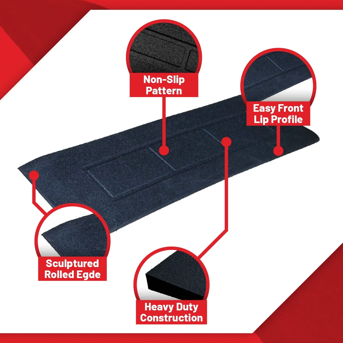 Threshold ramps are an ideal solution for short rises in and out of doorways for walkers, wheelchair and mobility scooter users. Our ramps boast the highest weight rating in their class which is made possible by the fact that they are solid from top to bottom as opposed to ramps that have hollowed out pockets (like pictured below).  The solid construction makes our ramps almost twice the weight of the hollowed out ones and have less chance of moving underneath you due to the extra weight of the ramp and the extra surface area contacting the ground. Our ramps are made of 100% recycled rubber and are built to provide a long lasting access solution with great traction.